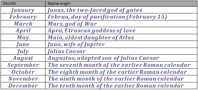 | Saturday | Saturn's day (God of fertility and agriculture) |